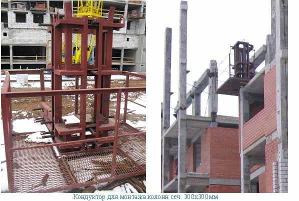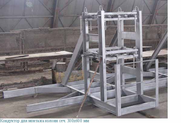 Применение универсальных кондукторов собственного изготовления для монтажа колонн позволило производить работы с различной ориентацией и взаимным расположением колонн в плане.