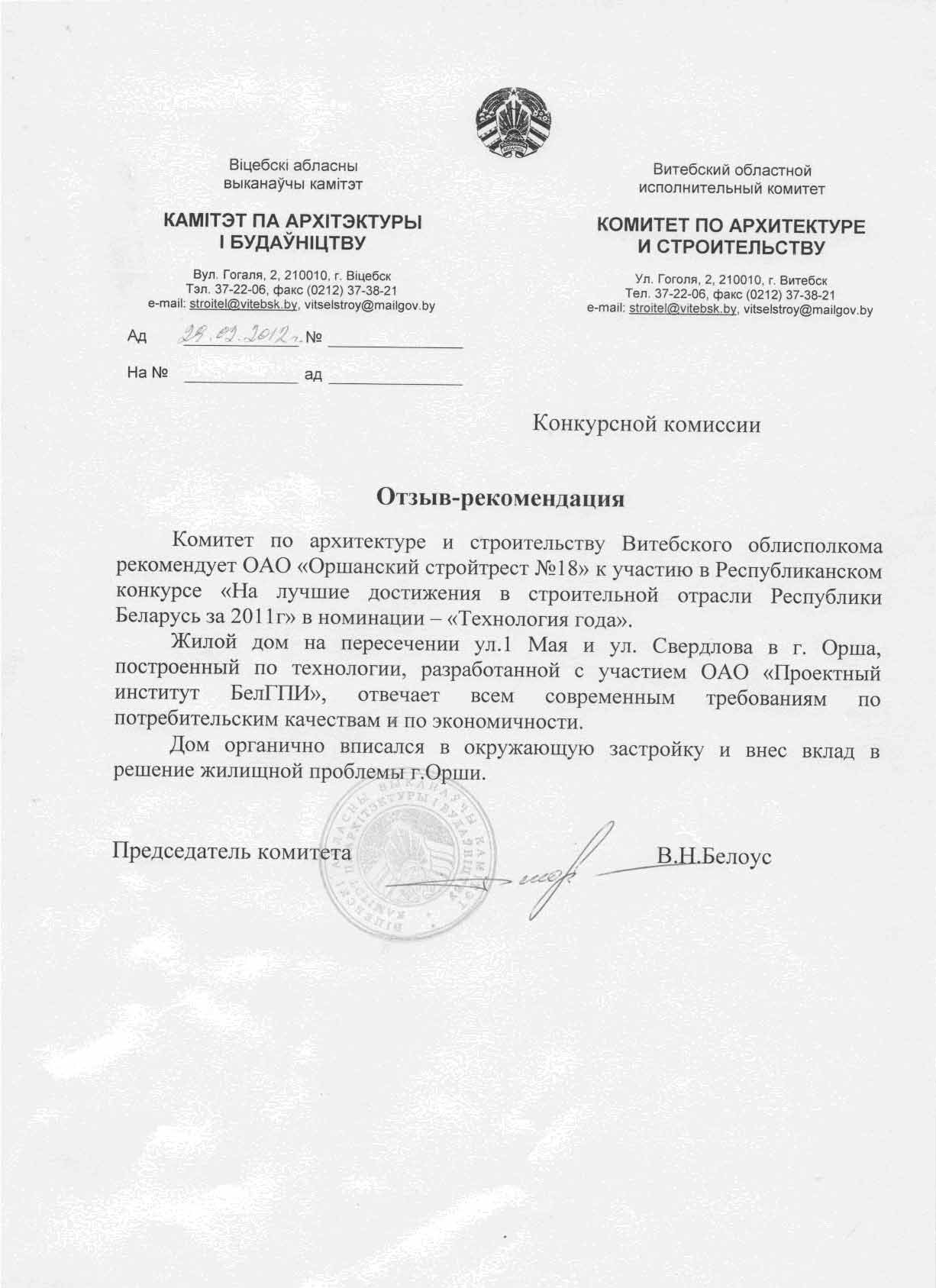 Конкурс «На лучшее достижение в строительной отрасли Республики Беларусь за 2011 год»