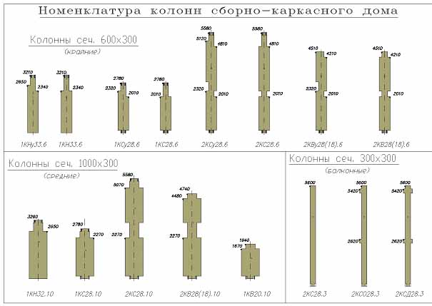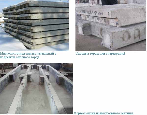 Сетка колонн дома 3.6х4.8(6.3)м и 3.9х4.8(6.3)м, в принципе может иметь разные размеры, кратные длине плит. Плиты рядовые и сантехнические выполняются в опалубочных формах многопустотных плит перекрытий типовых серий с использованием съемных вкладышей, образующих подрезку одного торца для опирания на ригели среднего ряда в одной плоскости. Бетон плит С16/20.