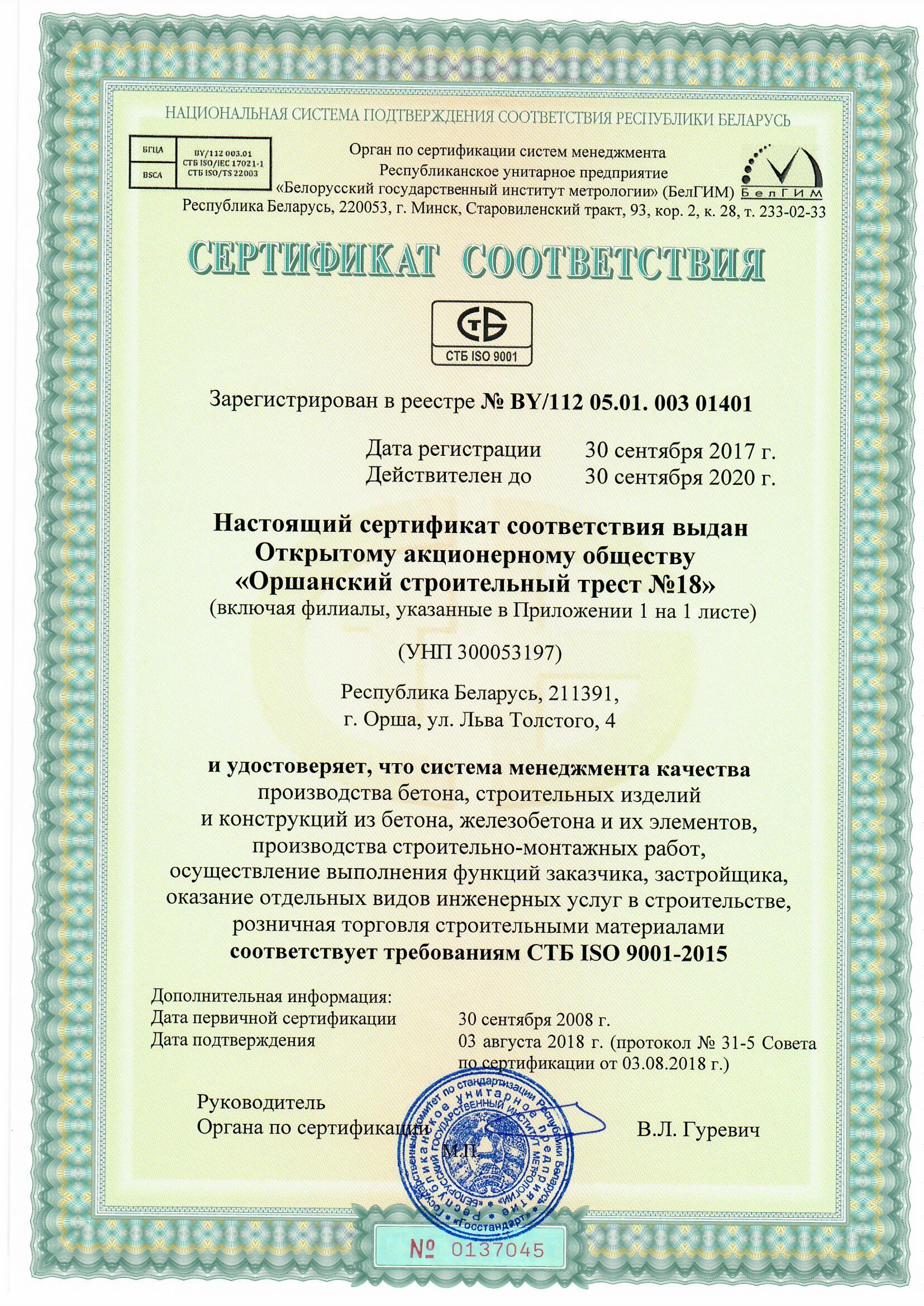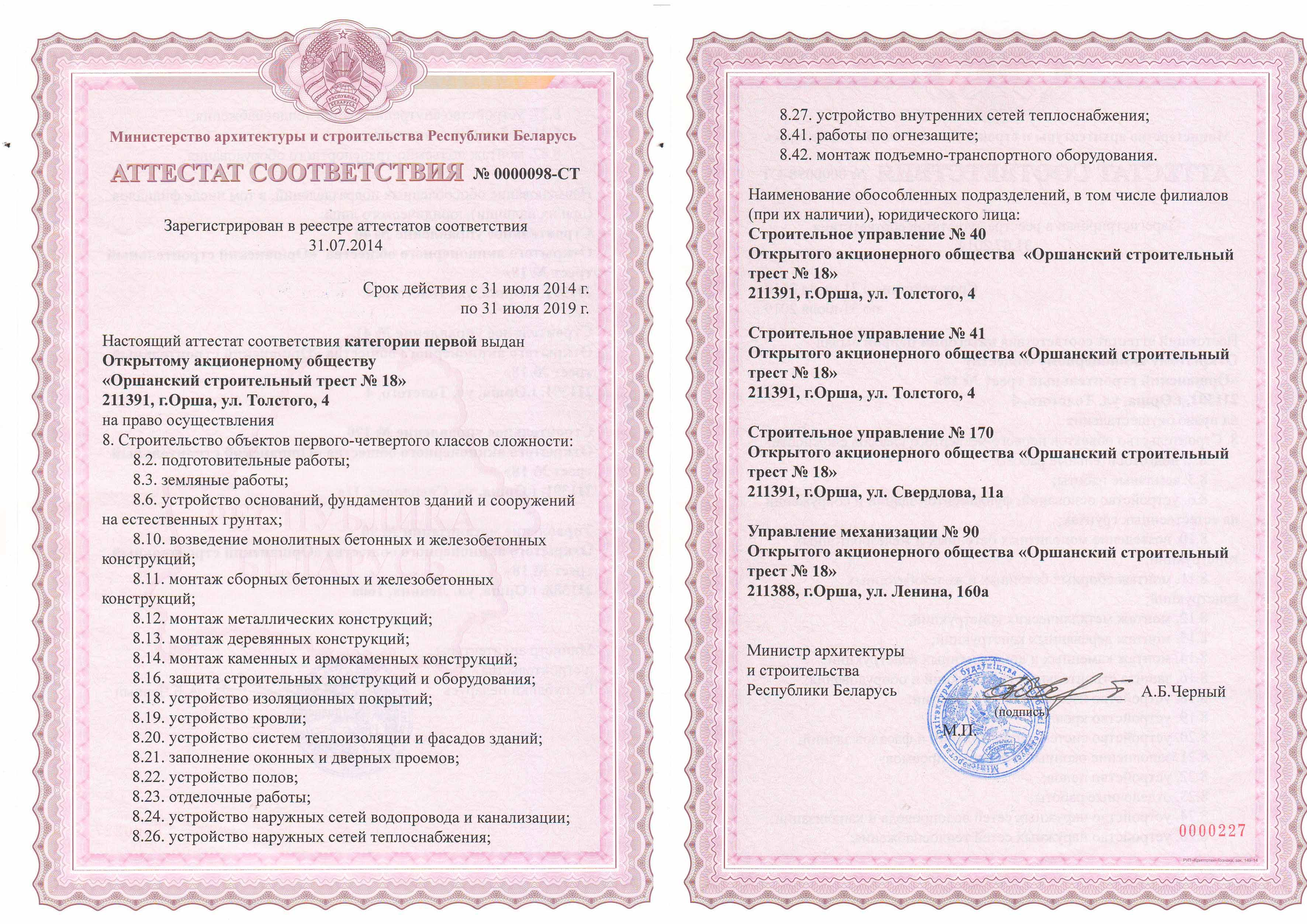 ОАО «Оршанский стройтрест № 18»